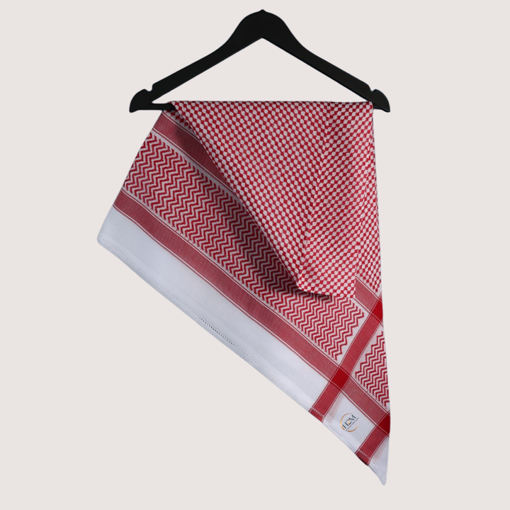Elevate your style with the H2M Diamond Red Shemagh. This Keffiyeh boasts a captivating modern design crafted from premium, high-quality cotton for an exceptionally soft touch. Delicate embroidery details adorn the edges, adding a touch of distinction and ensuring a remarkable presence.