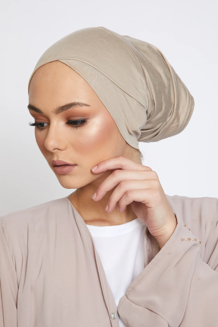 This cap provides a perfectly fitting base layer, keeping your hijab secure throughout the day without sacrificing comfort. The unique criss-cross style gives extra grip, making it especially ideal for pairing with slippery fabrics like chiffon. Whether you prefer a relaxed, draped style or a more structured wrap, the cap gives full coverage that stays put, lending effortless confidence to your everyday look.