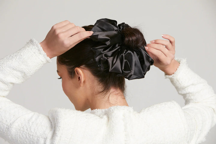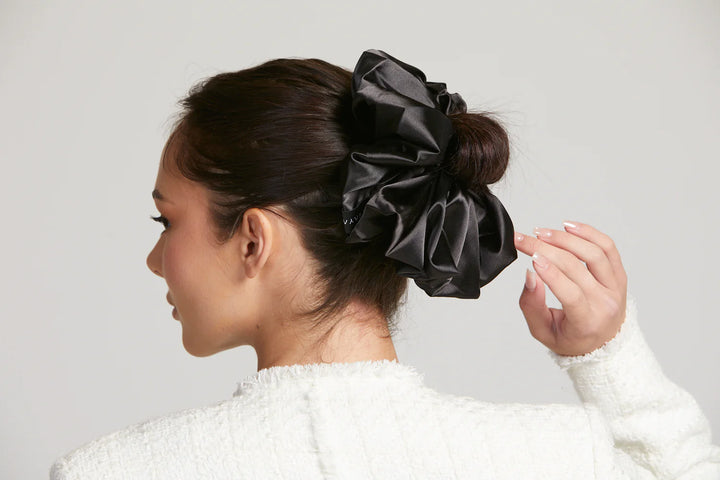 Our Satin Volumizer Scrunchie in Black is a must-have accessory for hijab wearers seeking to combine style with hair protection. Crafted from luxurious satin, this sleek scrunchie is designed to be worn comfortably under hijab caps, offering gentle care for your hair while adding volume and shape to your hijab style.