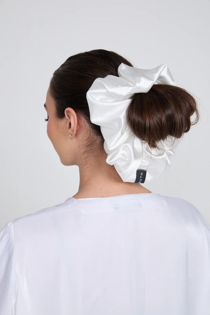 Elevate your hijab style with our Satin Volumizer Scrunchie in Nude, the perfect accessory designed specifically for hijab wearers. Crafted from smooth, luxurious satin, this sleek scrunchie provides gentle protection for your hair while worn under hijab caps.
